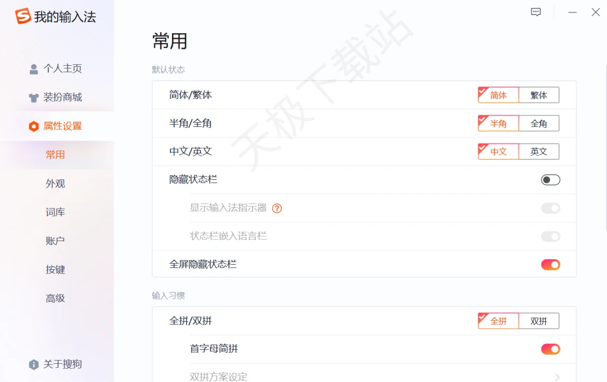 管理搜狗输入法的输入模式选项